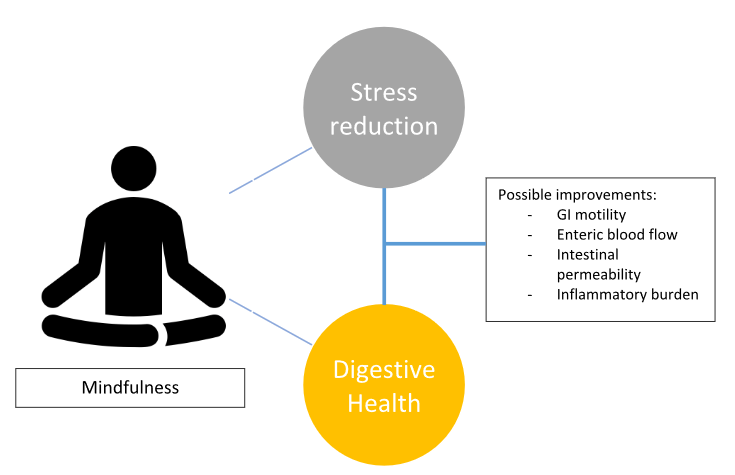 First comes first, what is mindfulness? The word “mindfulness” is currently in vogue, but not everyone can provide a basic and accurate definition of it. I speak from experience, of course. At the beginning of my personal journey on exploring mindfulness, I made every mistake about what this practice actually entailed. After several silent meditation retreats, hours after hours in the seating cushion, and reading books and scientific literature, I realized I had no idea what I was initially getting into. Few people understand why the practice is not really about sitting with legs crossed, or even about inducing any kind of state-effect like bliss, peace, or rapture. Personally, I define mindfulness as training in well-being. Mindfulness cultivates various types of attention, love for self and others, a non-judgemental attitude, and other meta-cognitive skills (not only awareness of the skill being trained but awareness of awareness itself). Repeatedly inducing these states produces trait-effects (long-lasting, intrinsic qualities of our personality) which include equanimity, accurate discernment, lasting compassion and empathy, or simply stated, wisdom. This development is tightly associated with affect regulation, social-emotional learning, and executive function (higher-order cognitive function such as impulse inhibition, selective and sustained attention, working memory, etc.). So, what is the connection between these skills and positive changes in digestive function?