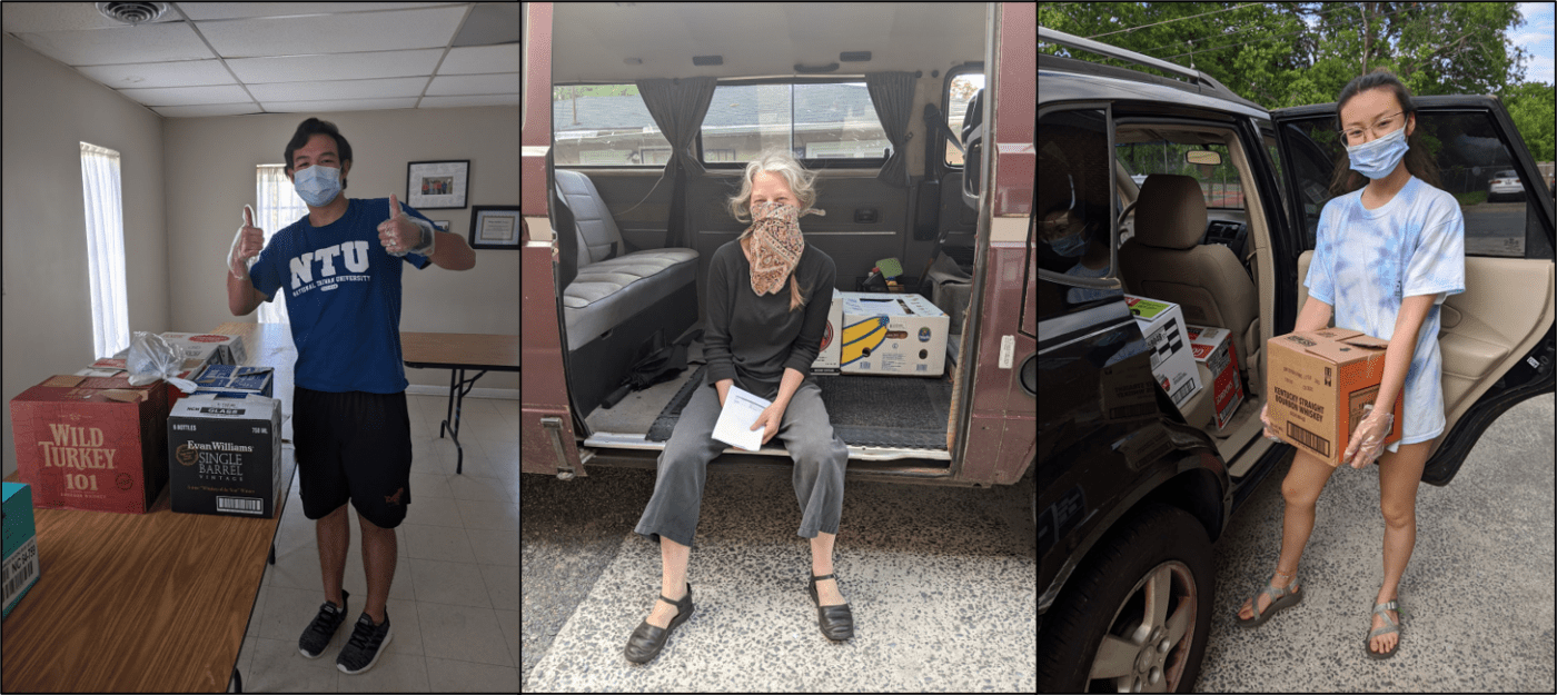 Header image: Heavenly Groceries volunteers packing grocery boxes and getting ready for deliveries (from left to right: J.J. Tolentino, Janet Downie, and Natalie Gauger)